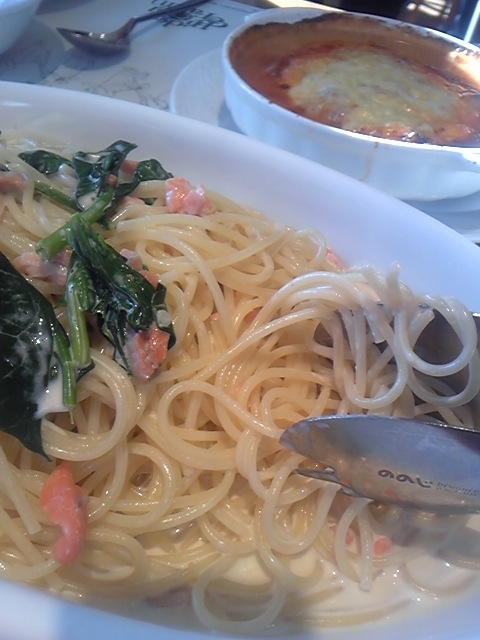 スモークサーモンとほうれん草のパスタ・ラザニア。