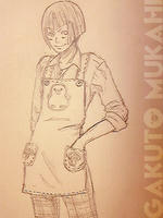 エプロン着てます。