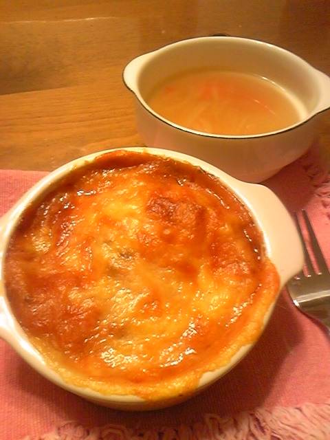 一昨日に物凄い勢いで作ったラザニアとコンソメスープ。